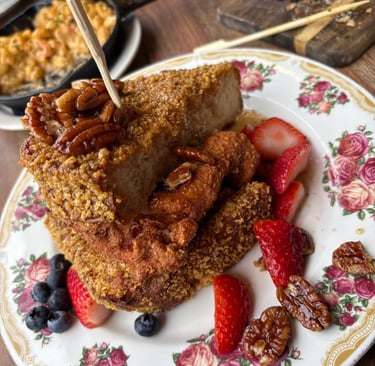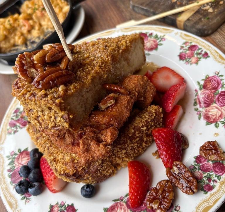 The French toast was fluffy, rich, and perfectly sweet without being overwhelming. Each bite had that ideal brunch balance. If you’re someone who loves classic brunch dishes, this is definitely worth ordering (Don't forget the chicken for a little spazazzz).