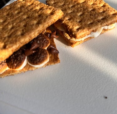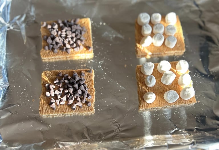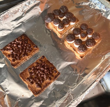 Time to assemble. Combine halves and BOOM your personal smore’s! *If you need to use a spatula to help pick up the halves to combine you are more than welcome. Using your hands is okay too just be mindful of temperature.